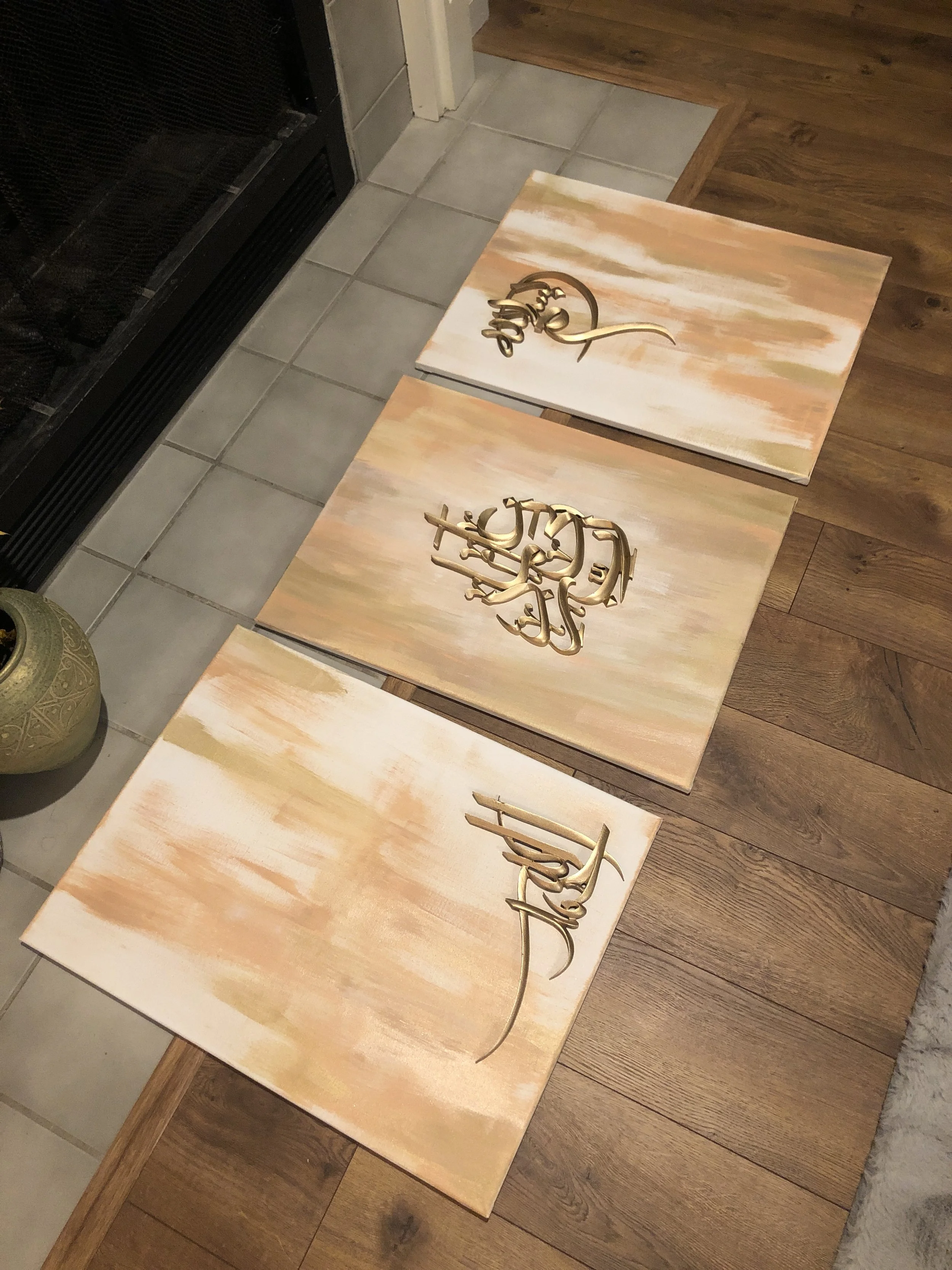 I definitely have some commitment issues when it comes to investing in and placing art around my home. There are just sooo many options out there, it seems nearly impossible narrow it down. I knew I wanted to incorporate Islamic calligraphy somewhere, but didn’t know what I was looking for until I happened to come across Khitati’s pieces at a MAS-ICNA convention several years ago. If you haven’t heard of them, I highly recommend checking out at https://www.khitati.com/!